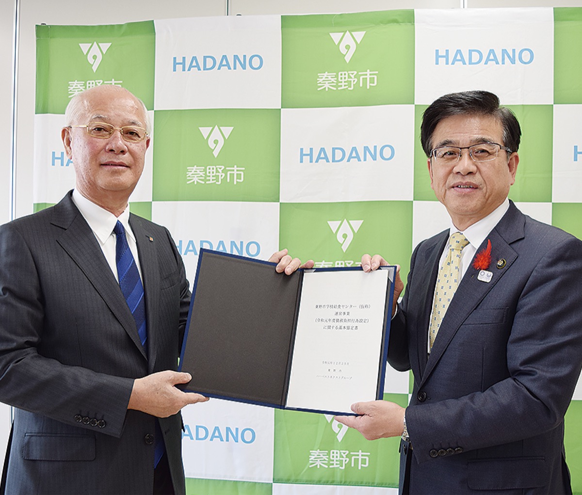 秦野市は2021年12月から開始する中学校完全給食に向け、「秦野市学校給食センター(仮称)」の建設・運営を行う業者に「ハーベストネクストグループ(代表企業・ハーベストネクスト株式会社/横浜市保土ヶ谷区)」を選定したが、同グループとの間で、昨年12月25日、運営事業に関する基本協定を締結した。