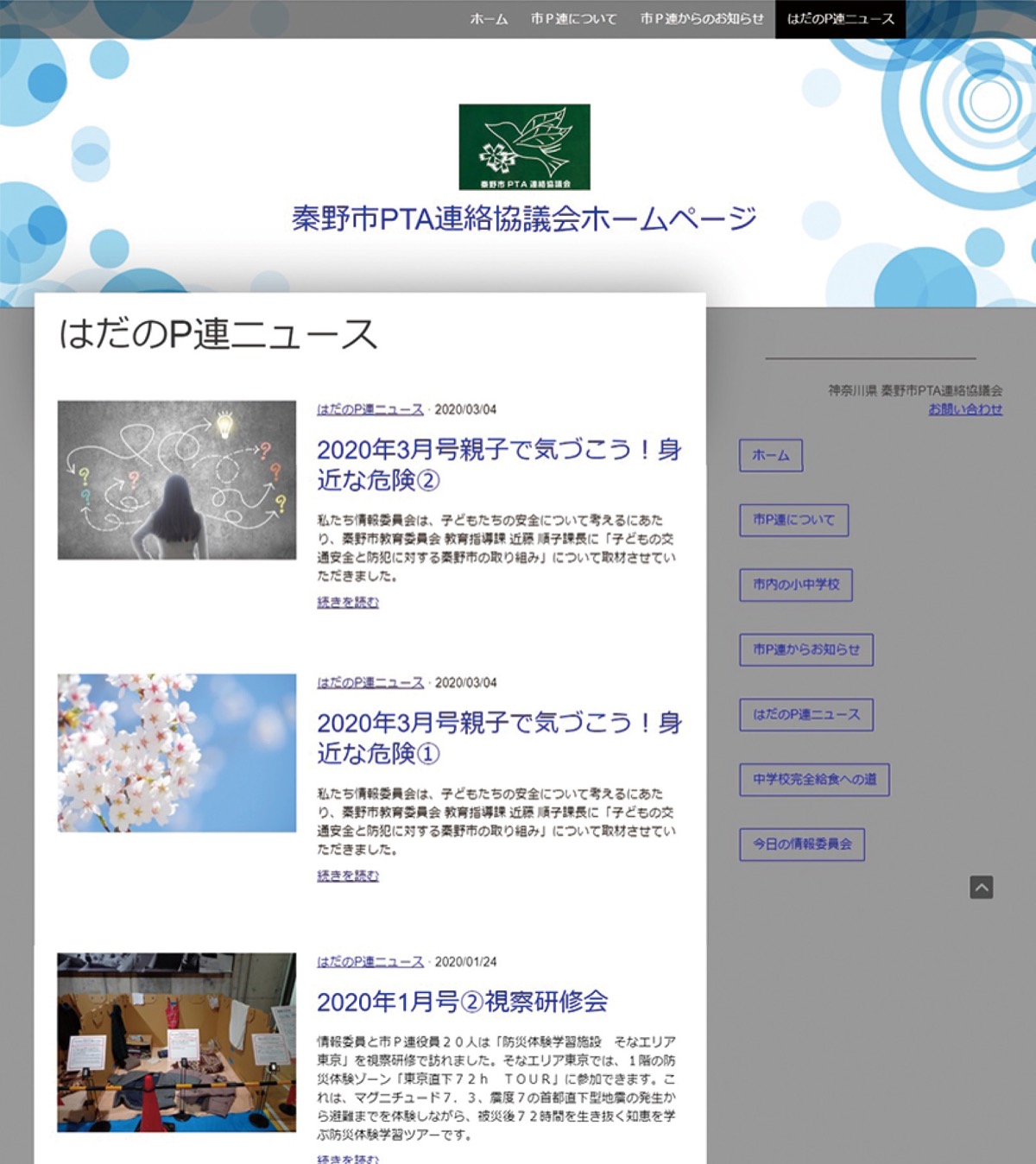 秦野市PTA連絡協議会(吉田信貴会長)が、年3回発行していた広報紙「はだのP連だより」をペーパーレス化し、今年度からWeb版の「はだのP連ニュース」に移行した=写真。時代の変化に合わせた取り組みの開始から1年。見えてきた効果と課題を取材した。