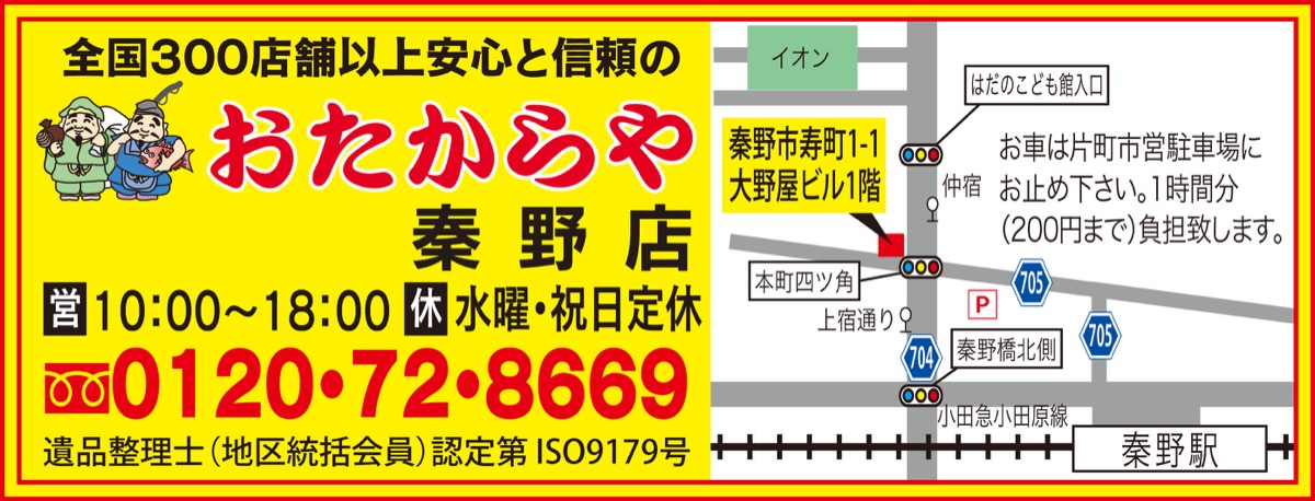 予約制で出張買取も行う「おたからや」は金、プラチナ、貴金属、ダイヤ、宝石、ブランド時計、バッグ、各種ブランド品、切手、ハガキ、金貨、銀貨、古銭、勲章、カメラ、ブランド食器、鉄道模型、絵画、掛け軸など幅広く買取強化中。同店では「大掃除などで不要な物もこの機会に現金化していただければ」と話している。