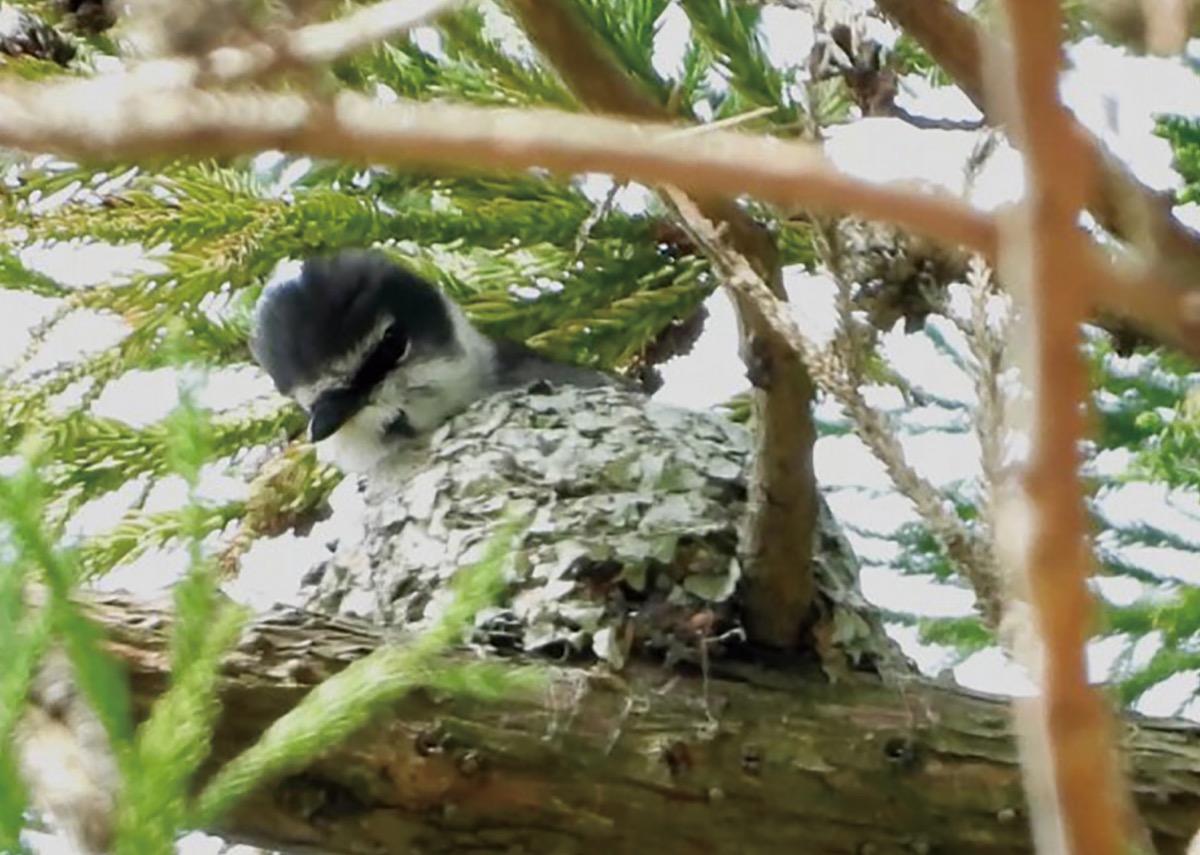 巣はお椀型でウメノキゴケを外側に貼り付けてあり、「体の割に小さく、頭と尾は巣からはみ出していた」と八木さんは話す。