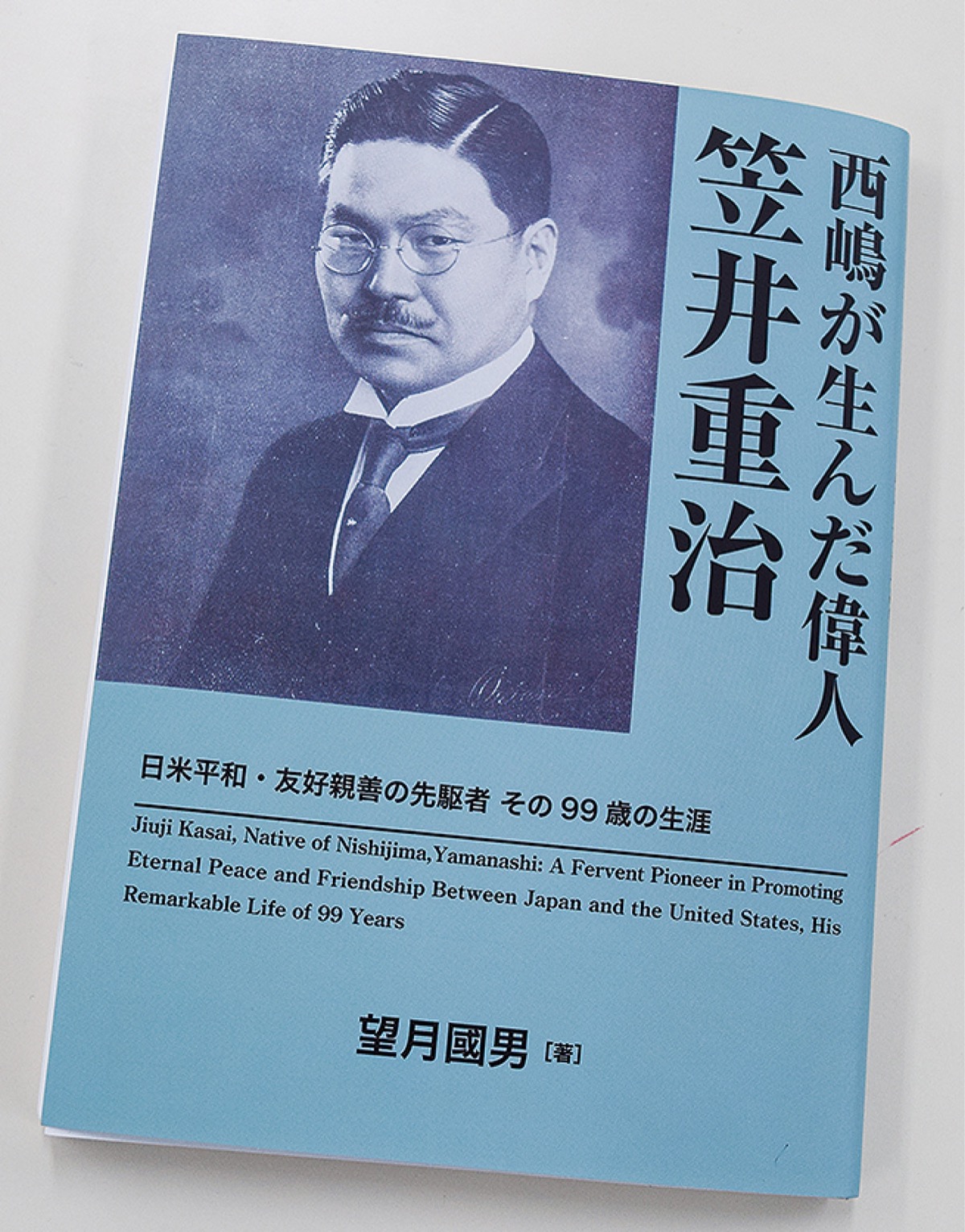 望月さんは後期高齢者となる75歳を前に生まれ育った故郷に何か恩返しができないかと考え、郷土の偉人である笠井重治を思い出したという。「若い人は日米の平和・友好に尽力した笠井重治のことをあまり知らない。何とかその功績を若い人たちに知ってほしい」と『西嶋が生んだ偉人 笠井重治』(国際文献社)の出版を思いついたという。