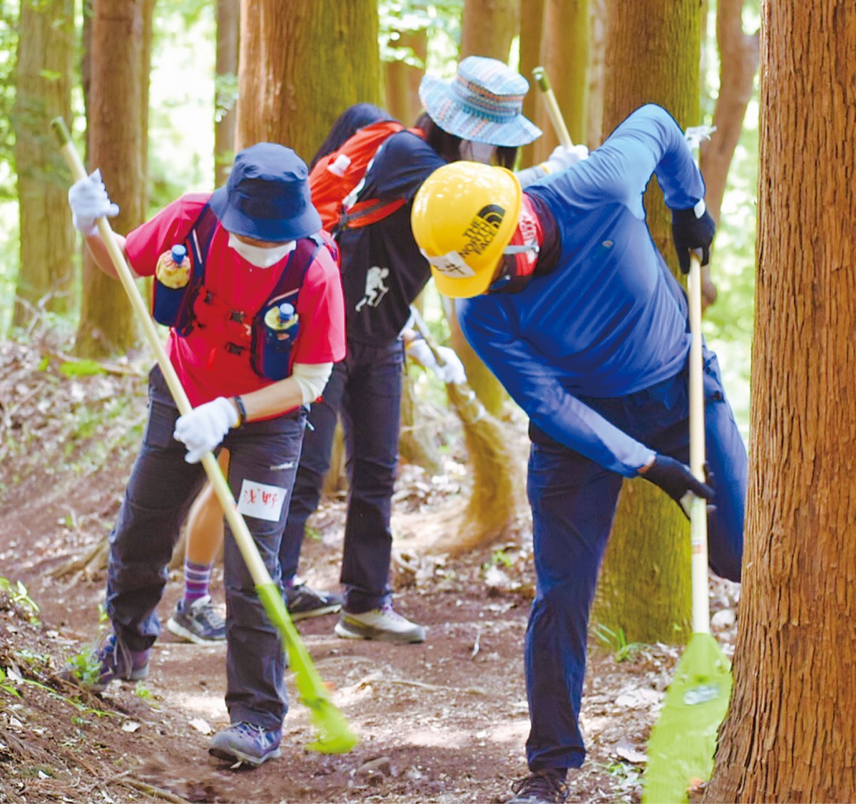 新型コロナウイルスの影響で利用者が減った丹沢の一部登山道では、落ち葉や小枝でコースが覆われヤマビルの発生が懸念されているという。これを受け、梅雨入り前に自分たちで清掃し、山を気持ちよく共有しようという趣旨で実施された。