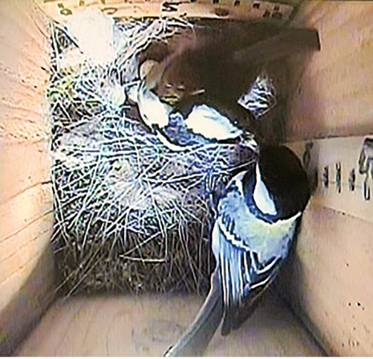 くずはの家では巣箱にカメラを仕掛け、営巣しにくるシジュウカラかヤマガラの観察を行っている。元気に巣立つ年、育児に失敗する年、ヘビによって全滅する年など、自然のありのままの姿を記録してきた。