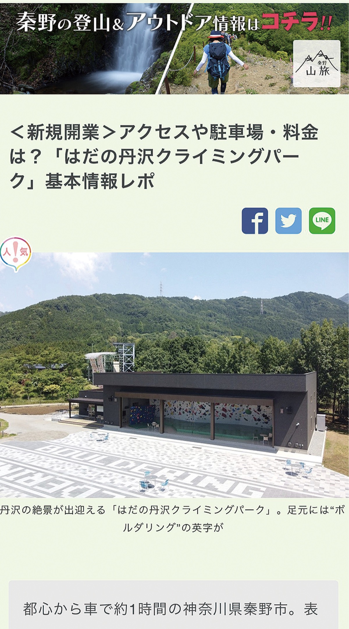 今回、新たに公開された「はだの丹沢クライミングパーク」の記事は、登山&アウトドアの特集内に掲載。秦野戸川公園内にオープンしたボルダリング施設の特徴や基本情報、隣接する県立山岳スポーツセンターのリード及びスピードウォールの情報などを見ることができる。