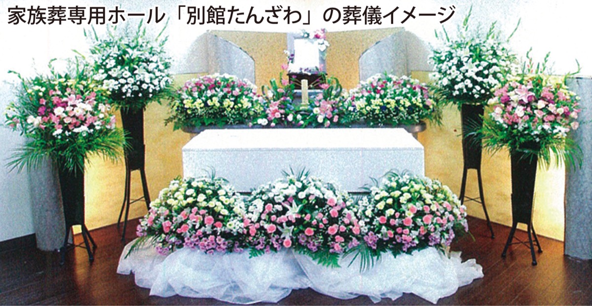同斎場では、規模や要望に合わせて6カ所での葬儀や法要が可能。新設ホールのほか、家族葬専用ホール『別館たんざわ』には控室に風呂・トイレなども完備されている。