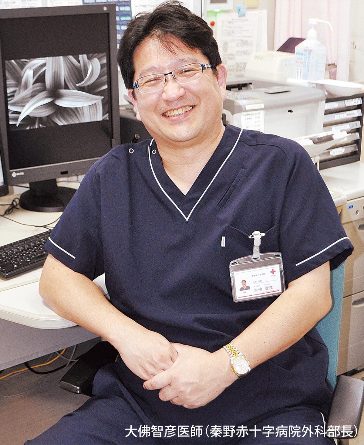 昨年4月に秦野へ赴任した大佛医師は「秦野市は大腸がん検診の受診率が悪く、県内で24位。排便がなく嘔吐や腹痛を訴えて受診する人が多く、がんによって腸の中が閉塞した状態の腸閉塞になっている。聞いてみると「がん検診」を受けていない人が多い。また県西部は便潜血が陽性であっても二次検診を受けていない人の比率が高い」と話す。