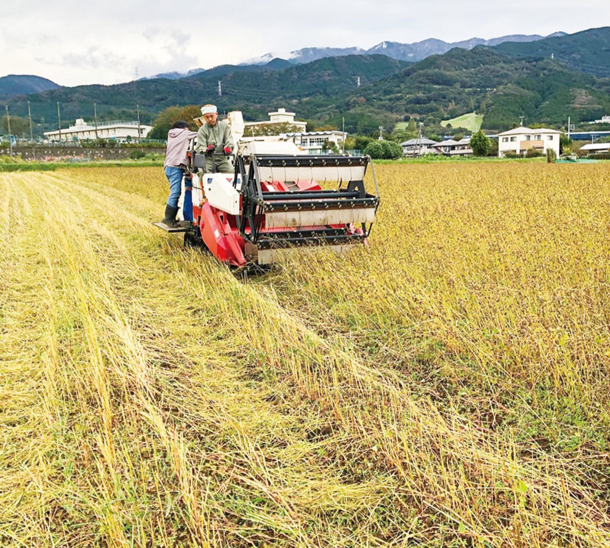石庄丹沢そば茶屋本舗が市内の畑で栽培してきた秋そばが実りの季節を迎え、10月下旬に 大型の農機具を使った大掛かりな収穫作業が行われた。