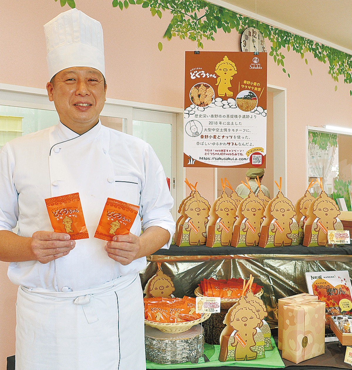 スイーツガーデンサクララ(秦野市尾尻545の1)が、市内の菩提横手遺跡から出土した土偶をモチーフにした「どぐうちゃんサブレ」を製作した。「この土偶はまだあまり市民に浸透していないと感じ、存在を広めたいと思った」と同店オーナーパティシエの吉野大輔さんは話す。