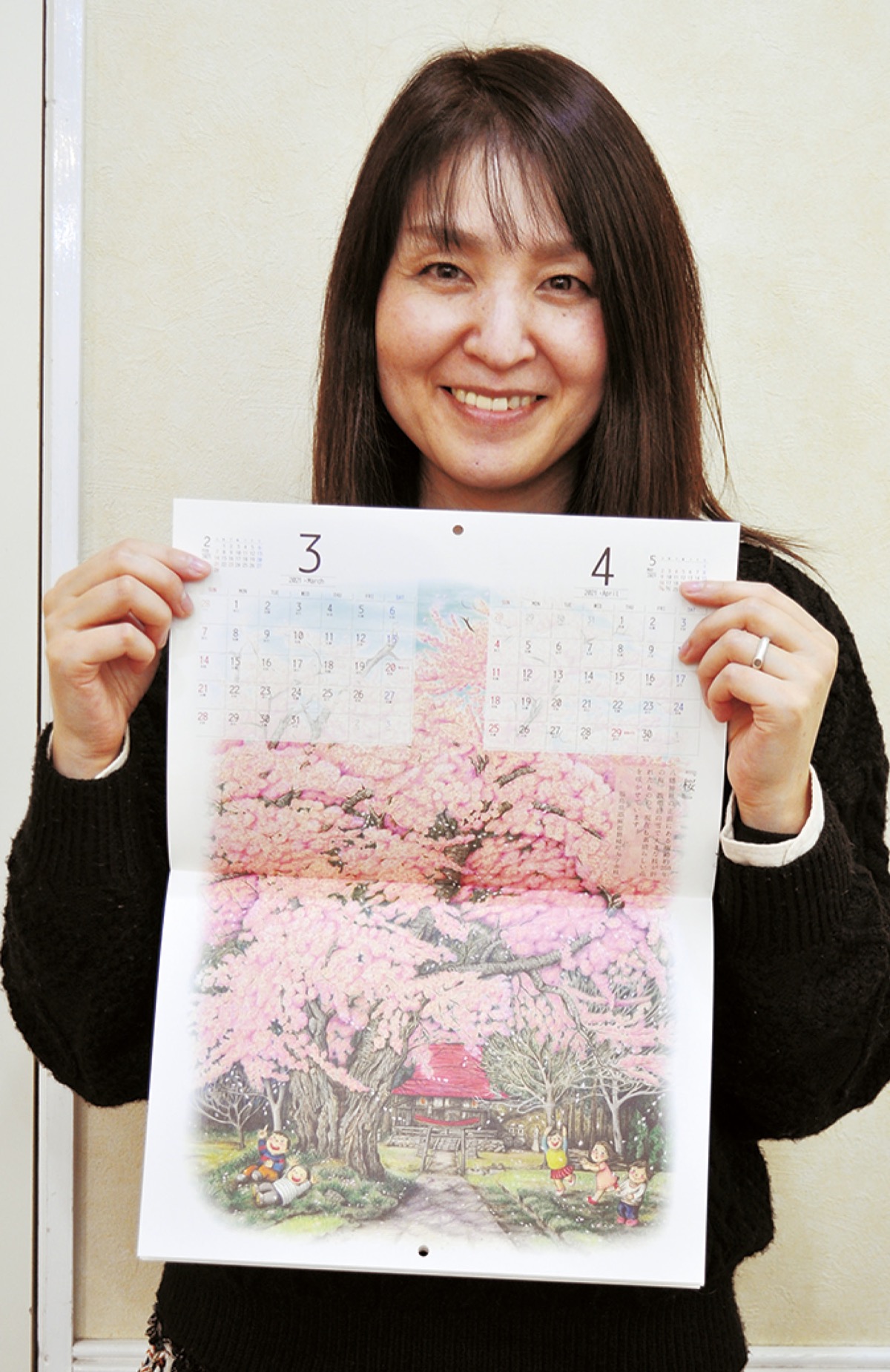 大竹さんは20歳で上京しOL生活を送っていたが、「小さい頃から好きだった絵を仕事にしたい」と31歳で色鉛筆画家になった。自身の心の支えである故郷の風景を中心に描いている。市内では2012年から鶴巻北のアトリエ山桃で色鉛筆講師を7年間担当したほか、丹沢美術館で個展を開くなど活躍。カレンダーを制作するのは今回で6回目だといい「絵を身近に感じてもらえればとカレンダーにしました。このご時世なので、優しい雰囲気にしたいと紙質も柔らかい雰囲気を出してくれる画用紙のような紙を使用しています」と大竹さん。1冊1200円(税込)。購入は大竹さん【メール】heart_keiko@maroon.plala.or.jpへ連絡を。