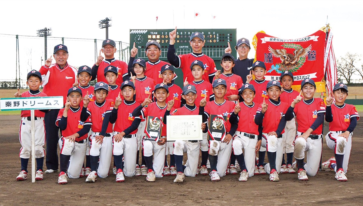 「秦野ドリームス」が、いせはらサンシャインスタジアムで11月21日・22日に開催された「第40回県央・県北少年(学童)軟式野球大会」(神奈川県野球連盟県央・県北地区支部主催)で優勝、県内8市代表チームの頂点に輝いた。コロナ禍に負けず、チームの絆を繋いできた秦野ドリームスは、9月の「第10回J:COM旗争奪大会」、10月の「高円宮賜杯第40回記念全日本学童軟式野球大会マクドナルド・トーナメント神奈川県大会」に続き、今大会の優勝で三冠の快挙を成し遂げた。