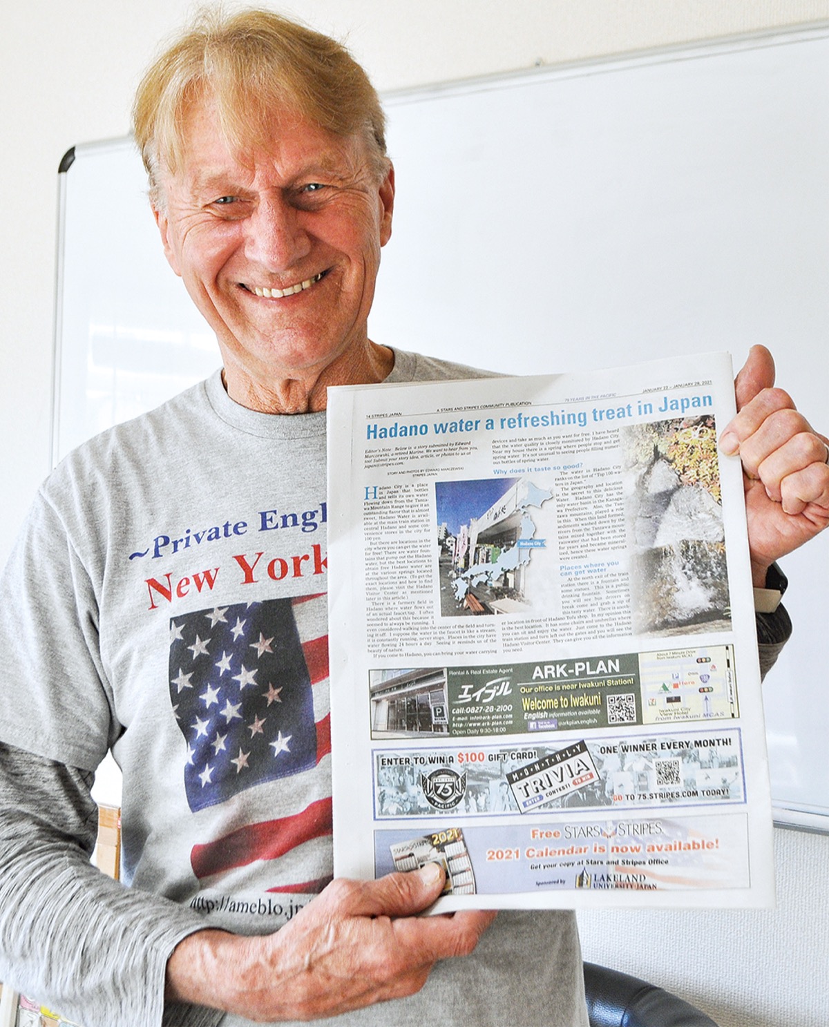 秦野市尾尻で英会話スクール「New York English」を営むエドワード・マーチェスキーさん(平沢在住)が書いた秦野市を紹介する記事が、星条旗新聞のフリーペーパー(1月22─28日号)に掲載された。記事では「名水」と言われる秦野の水について触れている。