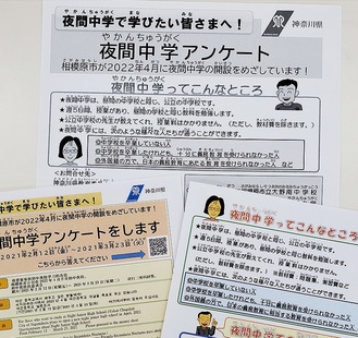 県教育委員会は、相模原市域外からも生徒が通えるように県内の市町村教育委員会と検討しており、今回のアンケートはそのニーズなどを調査するためのもの。アンケート用紙は市内では市役所や公民館などに配布されているほか、神奈川県教育委員会のホームページからも回答可能。実施は3月23日(火)まで。アンケートに答えられるのは県内在住(横浜市、川崎市、相模原市を除く)の16歳以上で、夜間中学での学び対象に該当する人。詳細は県ホームページで確認を。