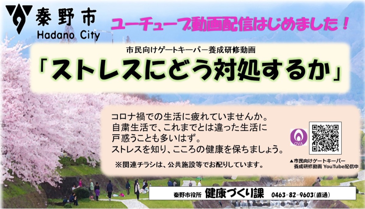 新年度を迎え、生活環境が大きく変わった人も多いはず。また1年におよぶコロナ禍で日々の生活に疲れや悩みを抱いている人も多くなっている。秦野市では、生活環境の変化がストレスとなり、こころの健康を崩しやすい時期になることから、「ストレスに対処する」ための動画を配信している。公開先は秦野市公式YouTube「はだのモーピク」。
