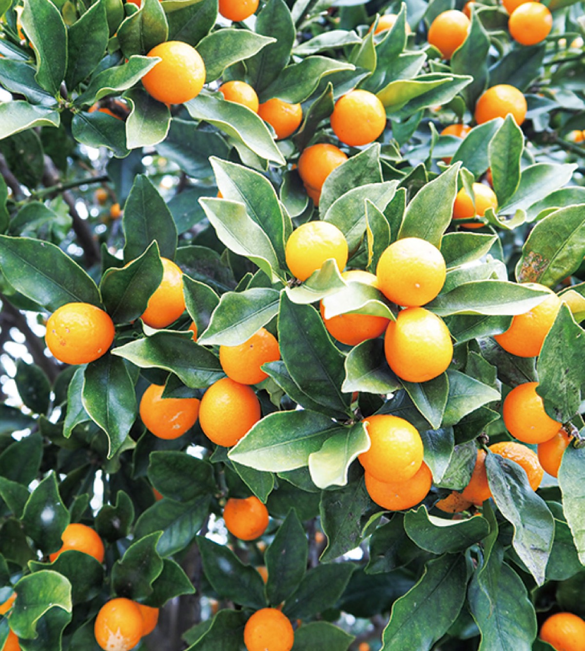 ”ワッサ〜”と茂った金柑の木に黄金色の実がたわわになっている。「これは縁起がよさそう。木の下に入ると黄金が降り注いでくる感じ」がする。