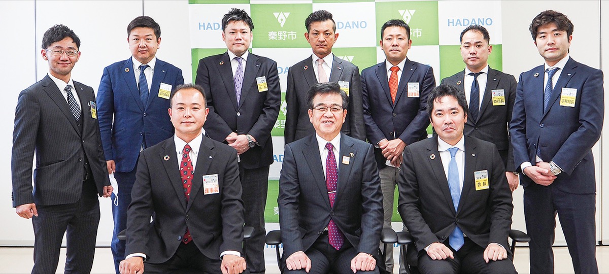 (公社)日本青年会議所関東地区神奈川ブロック協議会(坂倉賢会長)が4月8日、秦野市役所を訪れ、高橋昌和市長と意見交換を行った。