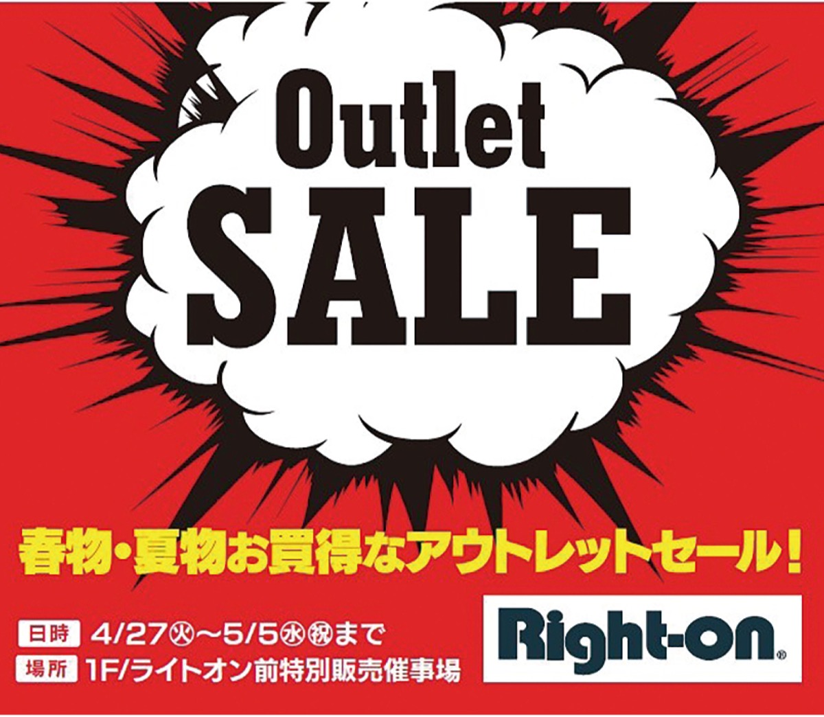 本館1階ライトオンでは、5月5日まで店舗前特別販売催事場で春物・夏物のお得なアウトレットセールを実施中。