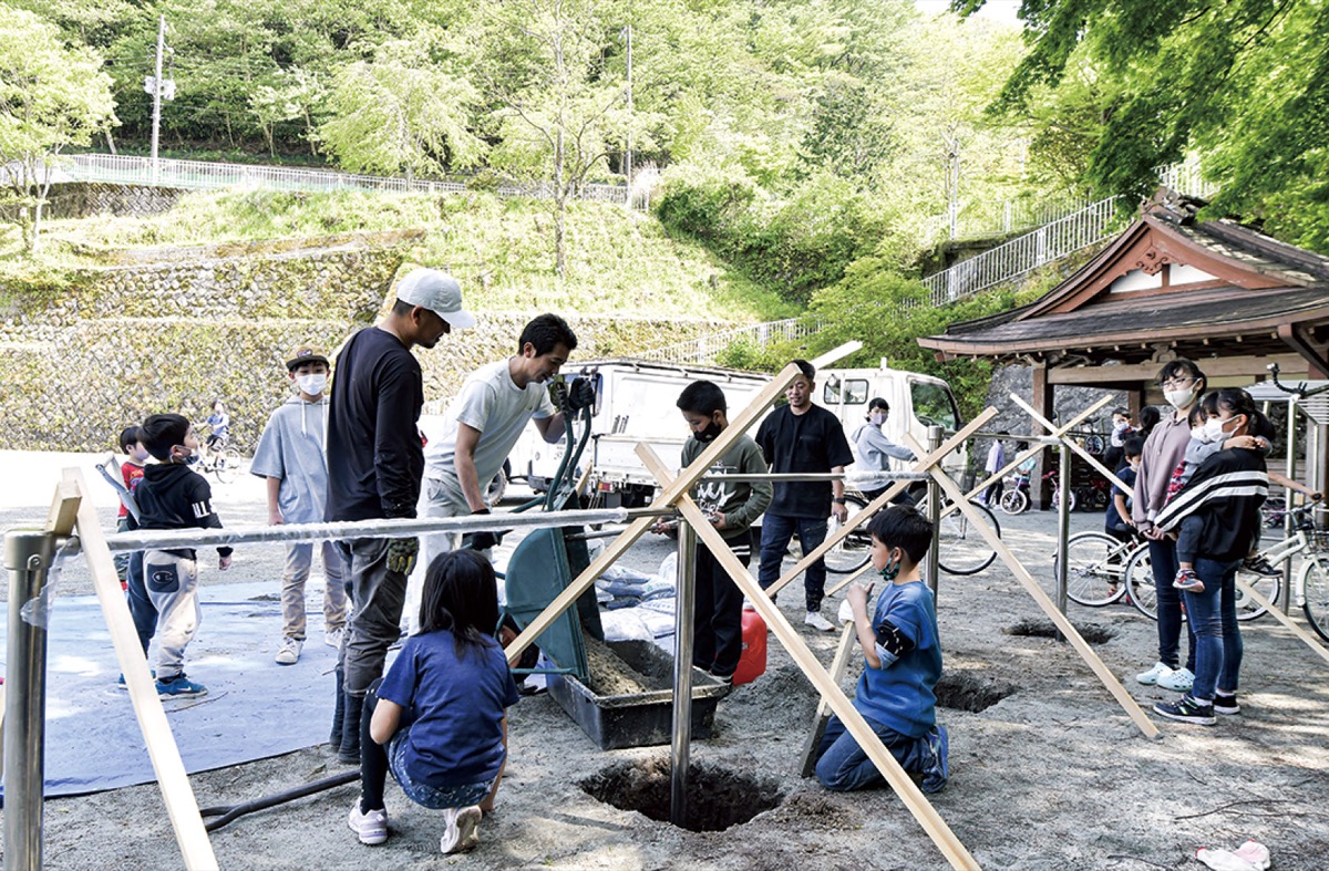 5月9日には自転車や一輪車を学園に届けたほか、建築業を営む伊藤さん自ら鉄棒の設置を施工。一緒に現地を訪れた伊藤さんの子どもや学園の子どもたちも手伝い、楽しそうに汗を流し作業を行った。