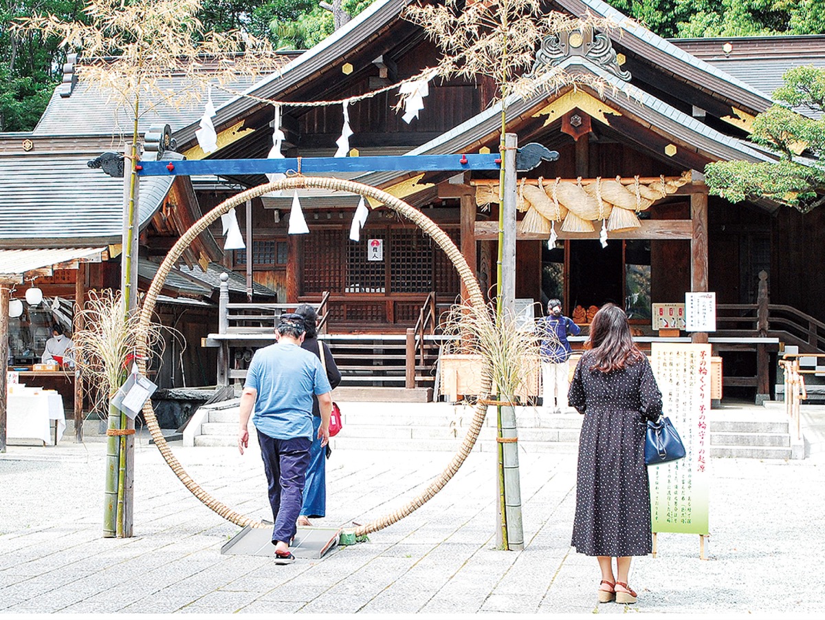 夏越の大祓とは、「人が生きるうえで知らず知らずのうちに犯した罪や穢れを取り除き、疫病や災厄を避け心身を清らかにすることを祈念した神事」と同神社は説明する。参拝者は茅の輪の横に立てられたくぐり方の説明を読み、くぐり抜ける姿が見られた。同神社では「コロナ禍の終息を願い明るく楽しい社会が戻ってくるよう願いを込めて飾りました。たくさんの方にお越しいただければ」と話す。