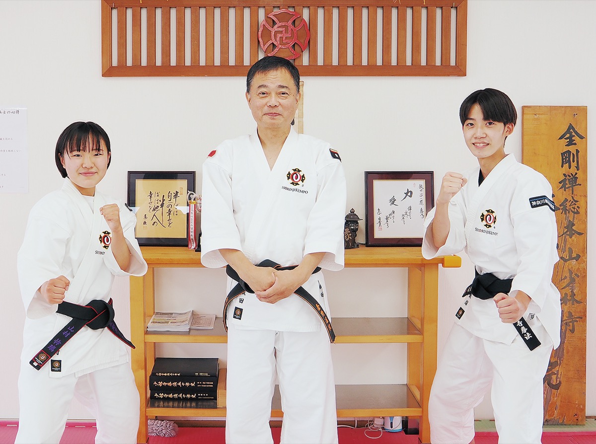 山村さんと飯塚さんはともに、金剛禅総本山少林寺秦野道院(弥生町)の出身。7月3日には同院を訪れ、飯田昌一道院長にインターハイ出場の喜びを報告した。