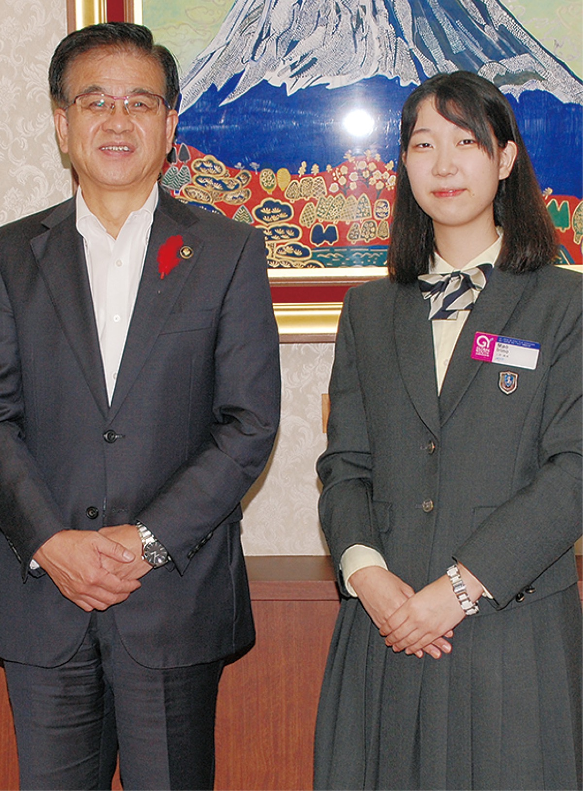 共に秦野在住で伊勢原市の自修館中等教育学校4年の2人。全国から推薦された高校生の中から選抜された2人はこれまでにオンラインによる研修などを受講し、世界中の大使と交流を図りながらSDGsなどに関して学んできた。