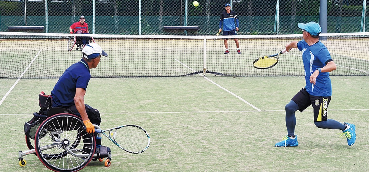 今年度はジュニアの部に4人、一般の部に20人の計24人が参加。毎試合ごとに車いす者と健常者の組み合わせを変えるパートナーチェンジ方式でブロック別リーグ戦を行った。参加者らはコミュニケーションを取りながら白熱した試合を展開。試合後は、対戦相手やパートナーとラケットタッチし、健闘を称えあった。