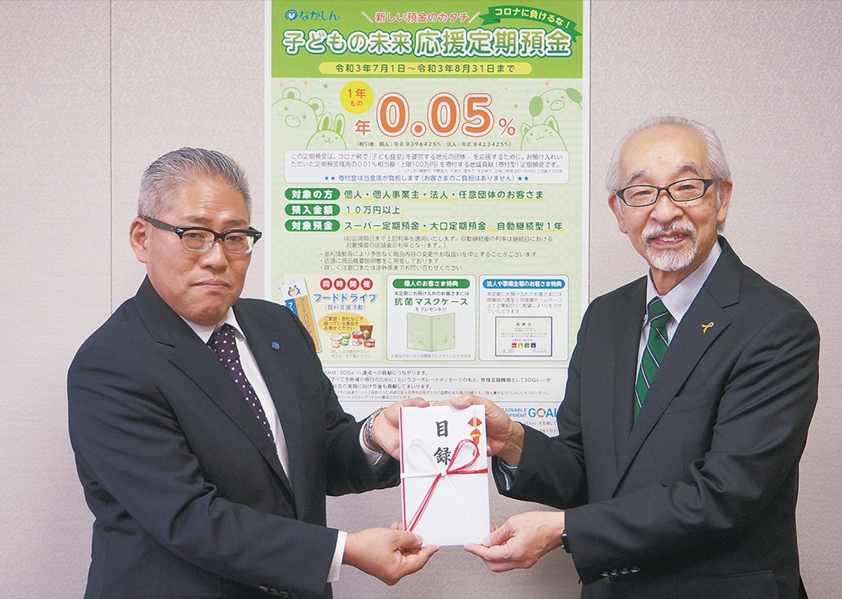 地域の子どもたちを取り巻く課題解決に向けた「子どもの未来応援プロジェクト」に取り組んでいる中栄信用金庫(本店・秦野市元町/北村圭一理事長)が、公募により申請を受けた地域の子ども食堂などに「なかしん子ども食堂応援金」を寄付した。