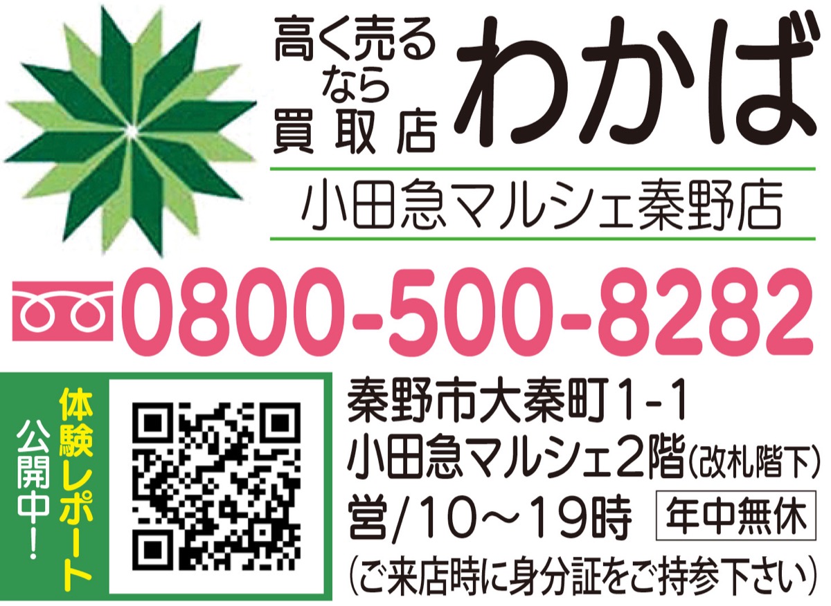 秦野駅直結「買取店わかば小田急マルシェ秦野店」では、ブランドアクセサリーの買取強化中!同店では「シャネルやルイヴィトン、エルメス、ディオールなど、ブランド品のお買取りはバッグやお財布等の小物だけではありません。アクセサリーも高価お買取り中です」と話す。アクセサリーは、貴金属だけでなくメッキもOK。シャネルのメッキアクセサリーは5万円以上の買取になったケースも。この機会をお見逃しなく。