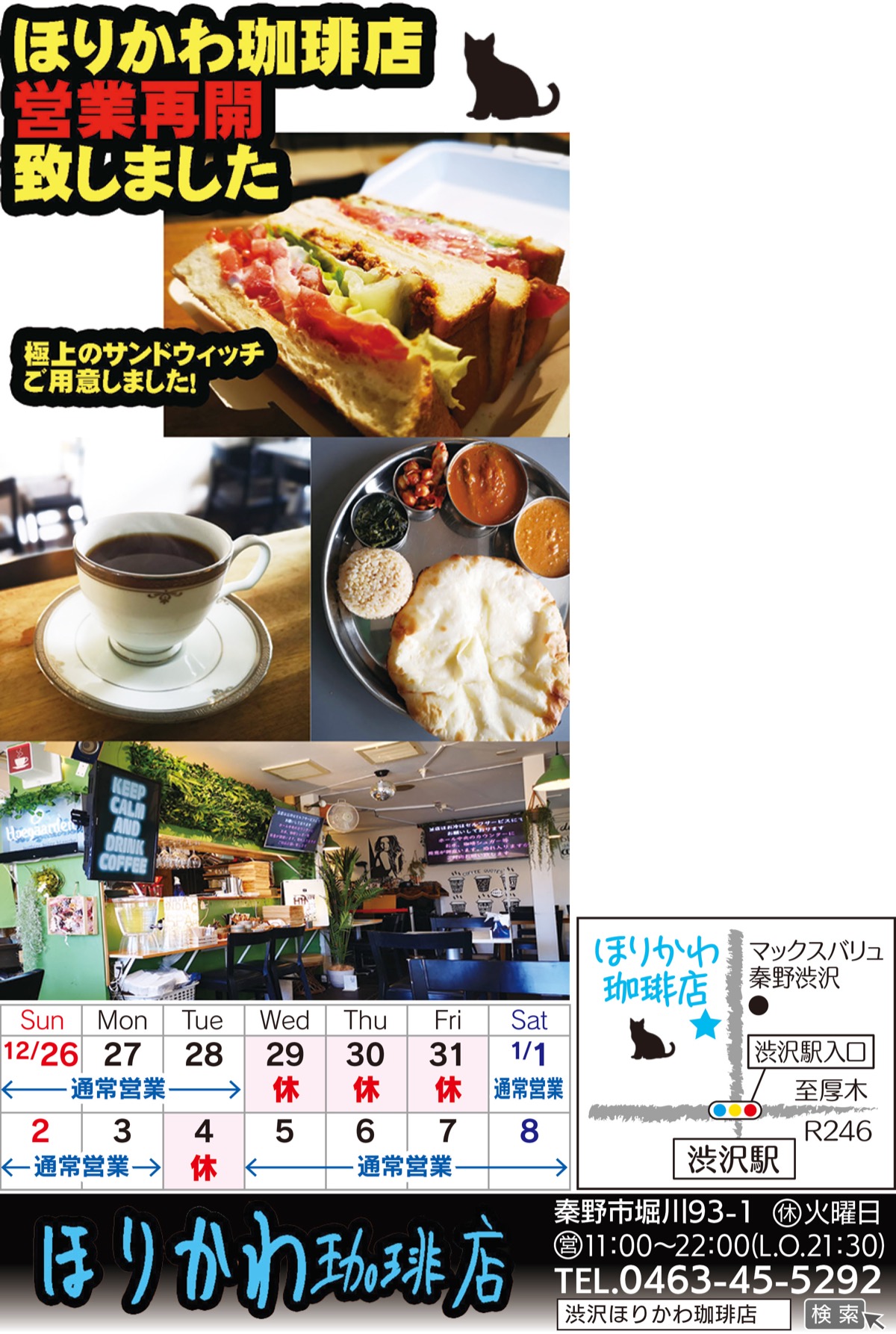 ハイクオリティなインド料理と上質な珈琲が味わえると人気の「ほりかわ珈琲店」が、装いも新たに営業を再開した。緊急事態宣言中に営業を自粛し、店内を大幅にリニューアルしている。