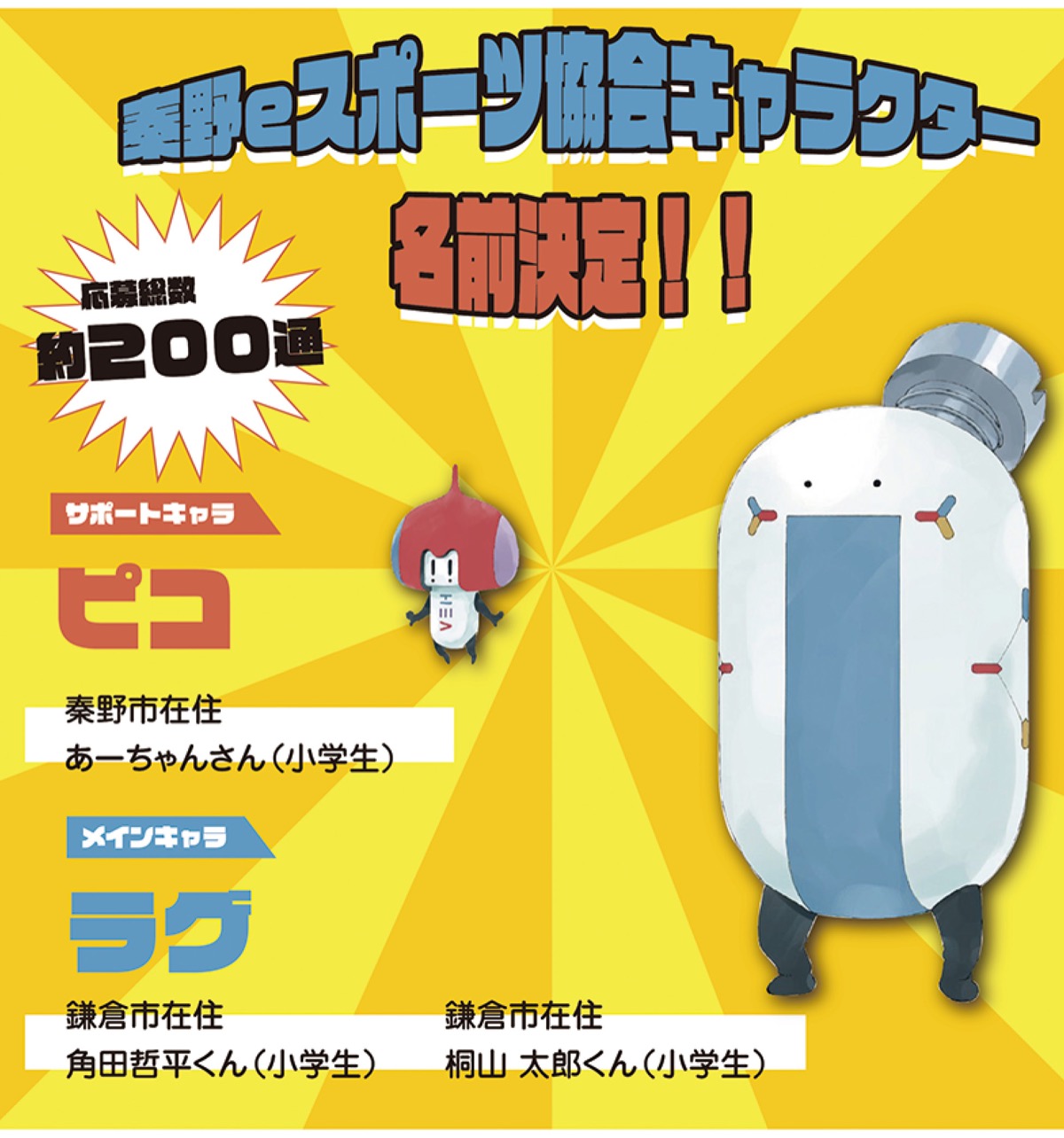 秦野eスポーツ協会が募集していたマスコットキャラクターの名前の選考がこのほど終了し、メインキャラは「ラグ」、サポートキャラは「ピコ」に決定した。