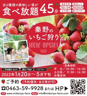 市民の暮らしを支える(株)みどりや(露木徳英社長)が、健康と食の安全への新たな取り組み「みどりやファーム」を開始。6種のいちごが楽しめる、食べ放題のいちご狩りを行っている。