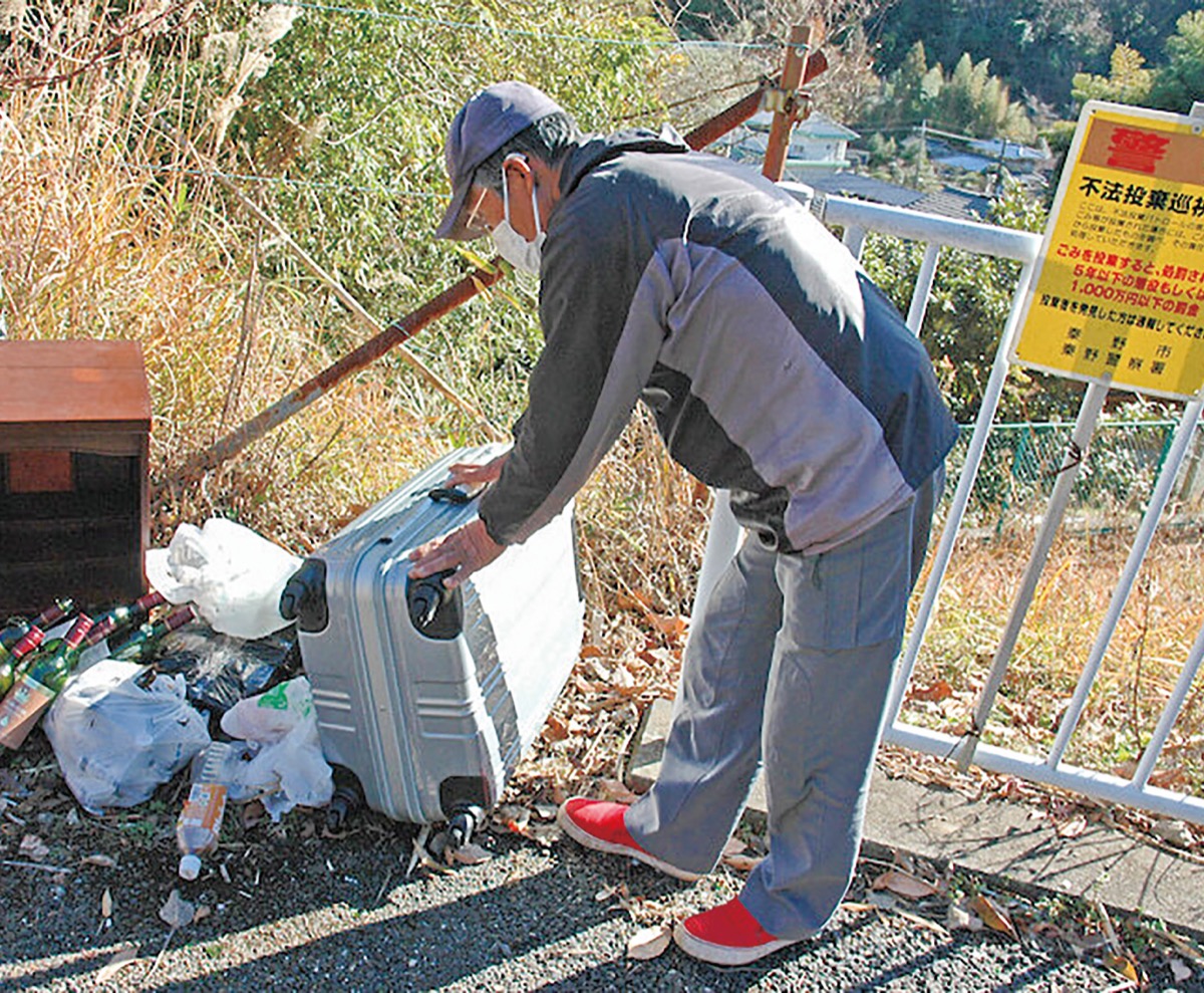 一方秦野市と大井町との市境に位置する渋沢の峠地区でも不法投棄が深刻化、住民が対応に苦慮している。道路沿いのひと気の少ない場所に度々ゴミが捨てられる。瓶や缶から時にはスーツケース、テレビなど大型のものまで投棄されている。「この前は仏壇が捨てられていた」と驚きとともに嘆くのは地域に住む石原榮一さん。