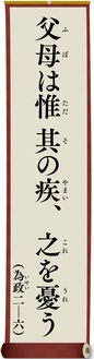 お父(とう)さん、お母(かあ)さんは、子(こ)どもの病気(びょうき)のことをとても心配(しんぱい)します。もし病気(びょうき)になったら、不安(ふあん)で夜(よる)も十分(じゅうぶん)眠(ねむ)れません。食事(しょくじ)もおいしく食(た)べられなくなります。子(こ)どもは健康(けんこう)でいることが一番(いちばん)の親孝行(おやこうこう)になります。親(おや)の健康(けんこう)を願(ねが)うことも又(また)親孝行(おやこうこう)です。父母(ふぼ)からいただいた身体(からだ)を大切(たいせつ)にしましょう。
