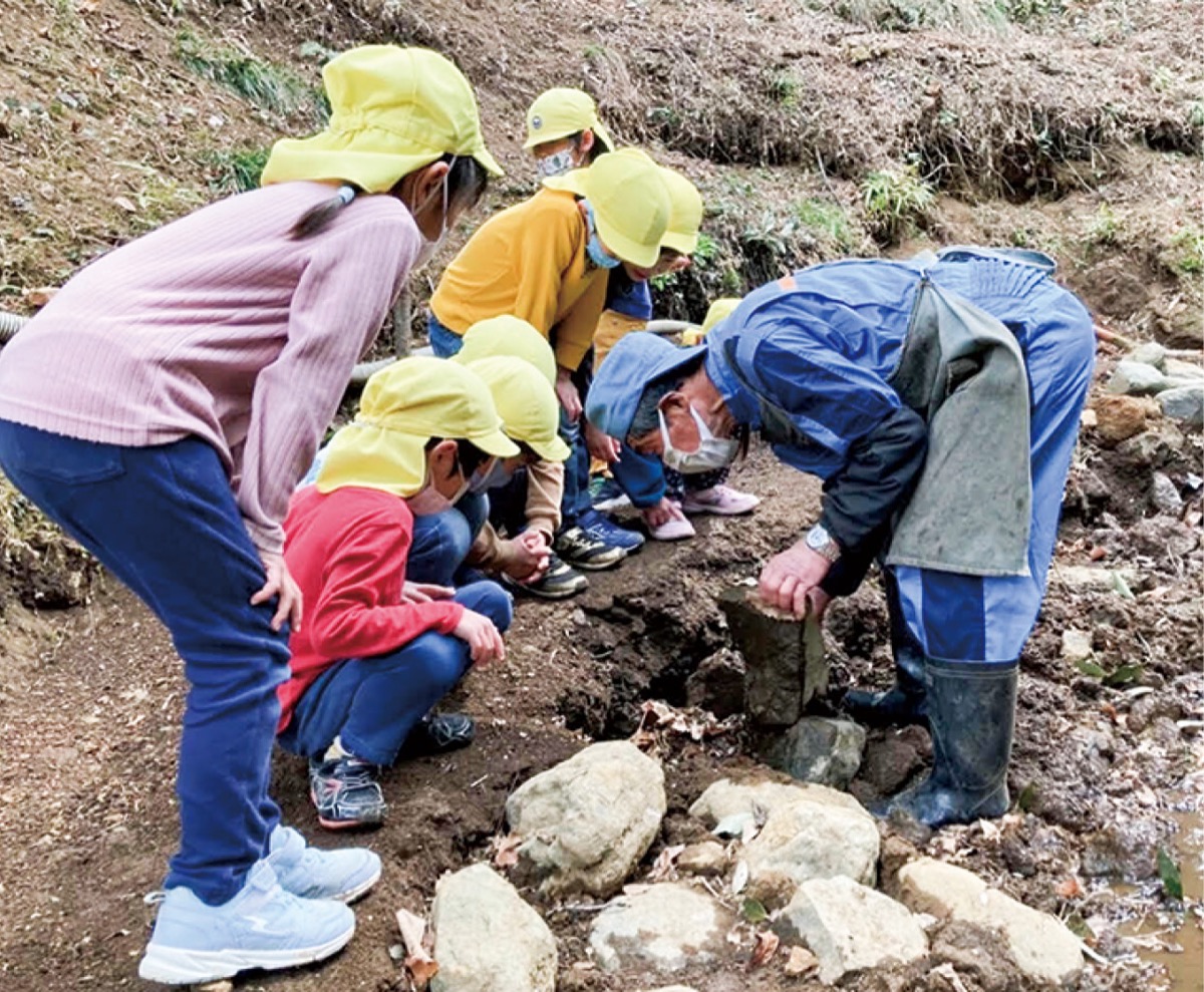 秦野市千村にあるサワガニの里に、堀川ほほえみ保育園(濱口せつ子園長)が遠足に訪れ、園児たちは自然を満喫した。