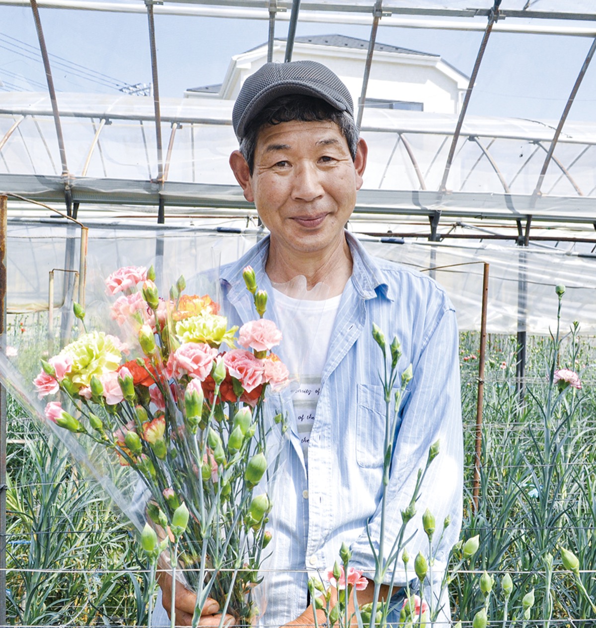 JAはだの花き部会カーネーション部の部長を務める櫛田雅洋さんは、落合にある「櫛田農園」の2代目。現在はビニールハウスで6品種のカーネーションを育てている。同農園で長年育てられているのは、ピンクのカーネーション。発色が良く、出荷量も多い人気の品種だという。