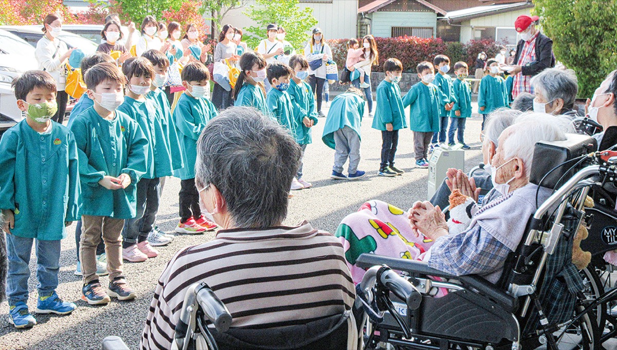 北幼稚園園児が4月28日、菩提のサービス付き高齢者介護施設「ふるさとホーム渋沢」を訪問した。同園ではこれまでにも園児が同施設を訪問し、手話や歌を披露するなど交流を続けてきた。