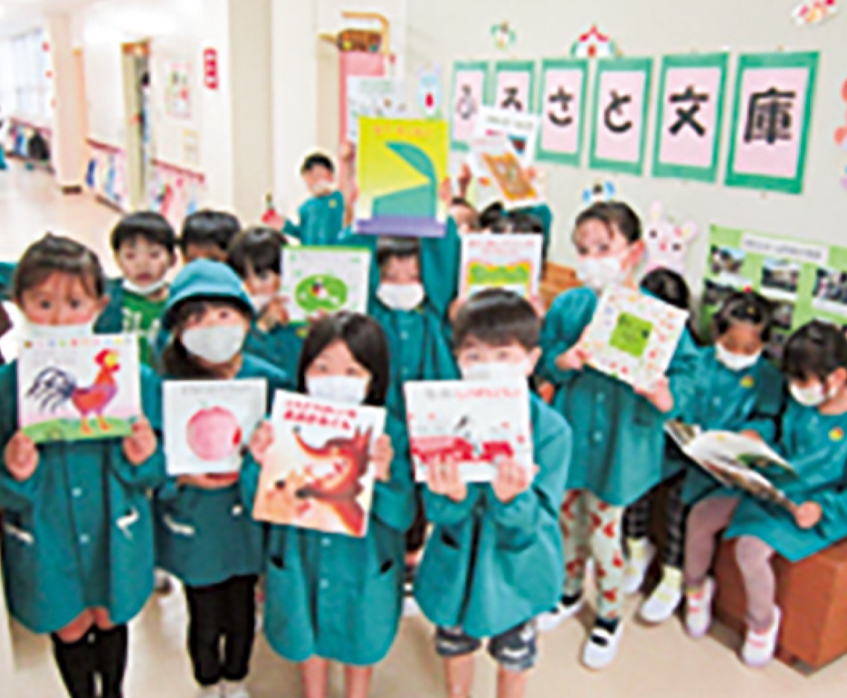 同幼稚園と同小学校では寄贈された本を「ふるさと文庫」と名付けた。北幼稚園では多くの子どもたちに楽しんでもらおうと、読み聞かせなどに活用していくという。