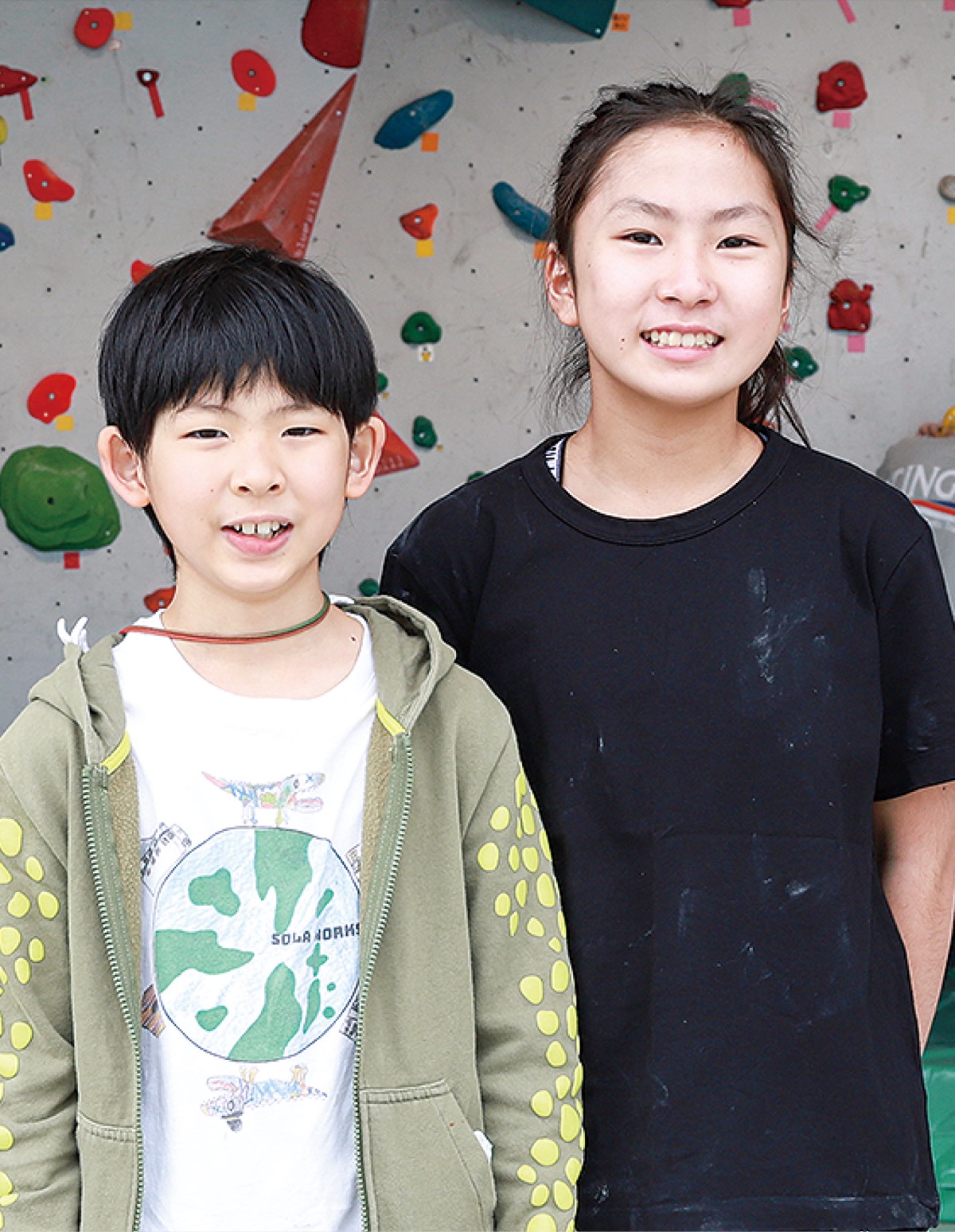 父親の崇史さんが高校の山岳部の顧問をしていたこともあり、親子ではだの丹沢クライミングパークを訪れた際に崇史さんが「やってみる?」と声をかけたのがきっけけ。「おもしろそうだったから」と、笑顔を見せる。同施設のクライミングボードは高さが15mもあるが「怖くない、楽しい。難しいところを完登できた時がうれしい」と屈託なく笑う。恐竜が好きで「将来はクライミングができる恐竜博士になりたい」とはにかんだ。