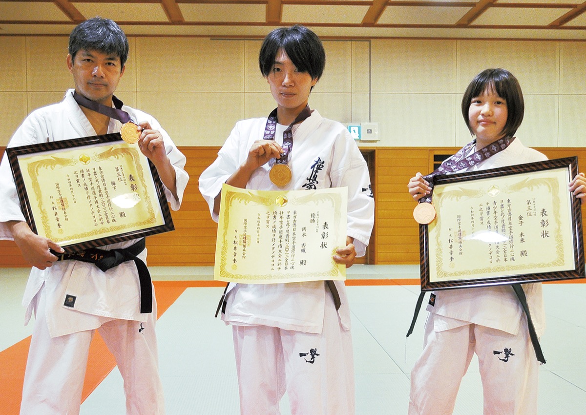 極真会館西湘支部所属の梅下智弘さん(50・秦野市北矢名)と金子未来(みくる)さん(10・大磯町大磯)岡本香織さん(38・平塚市真田)の3人が、4月16日に東京体育館で行われた全国大会で優秀な成績を収めた。