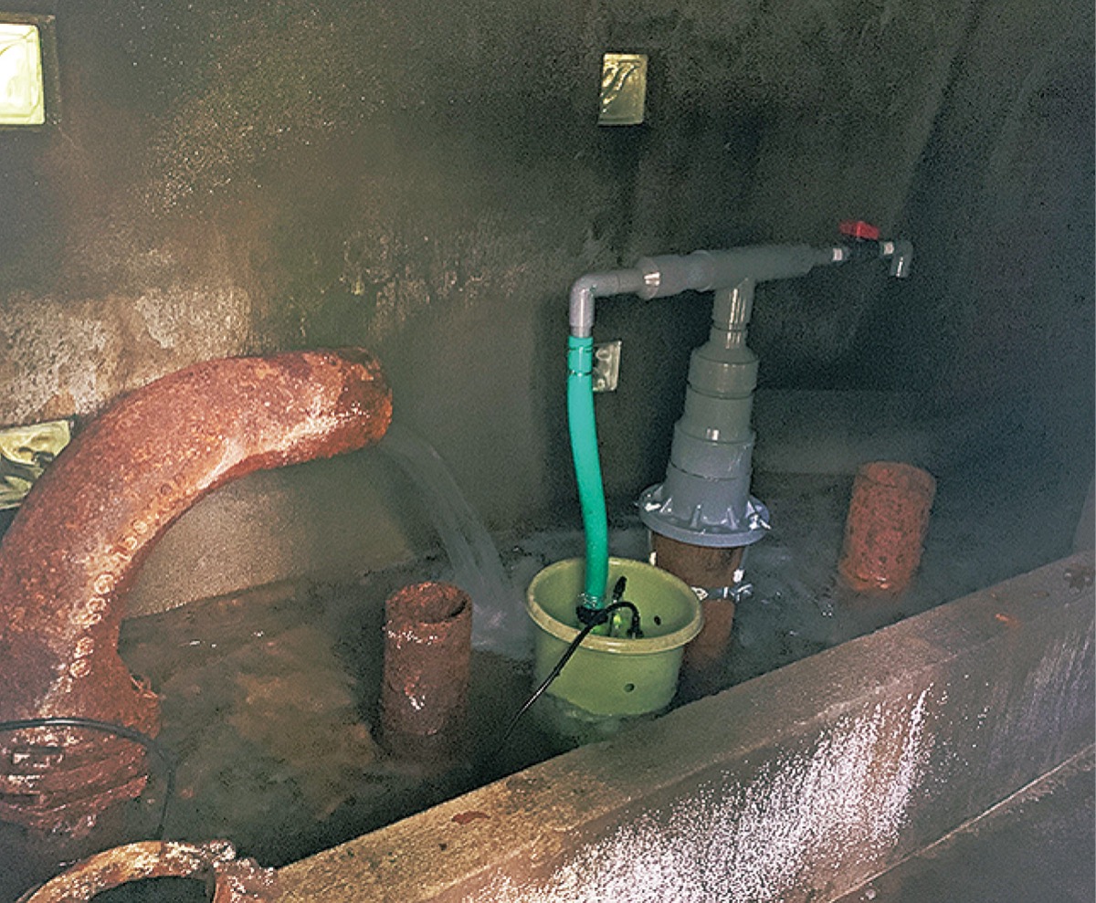具体的な方法決定後も、ポンプ設備をどう作るかが大きな課題に。限られた予算や貰った材料、手元にある道具を駆使し、昨年12月にくずはの家の職員である杉山吾郎さんが手作りした。