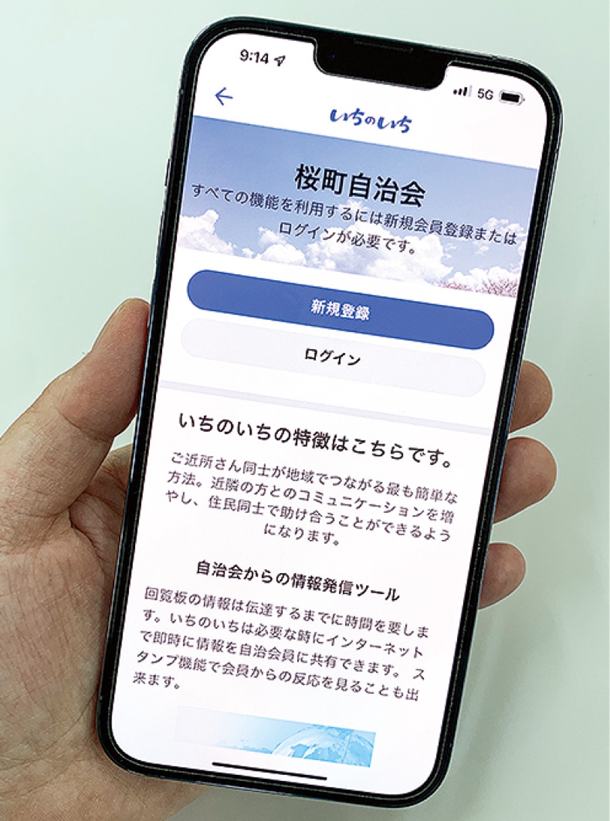 「いちのいち」は自治会単位で利用登録を行い、登録済み自治会の会員がSNSにログインすることで、回覧物等をスマホで見られるようになる。市では現在、月2回の定期的な回覧物の配信、市からの情報メール、公式LINEの情報の配信などを行っており、自治会は回覧板の煩雑さを解消できるほか、防災・災害情報源としても活用できる。