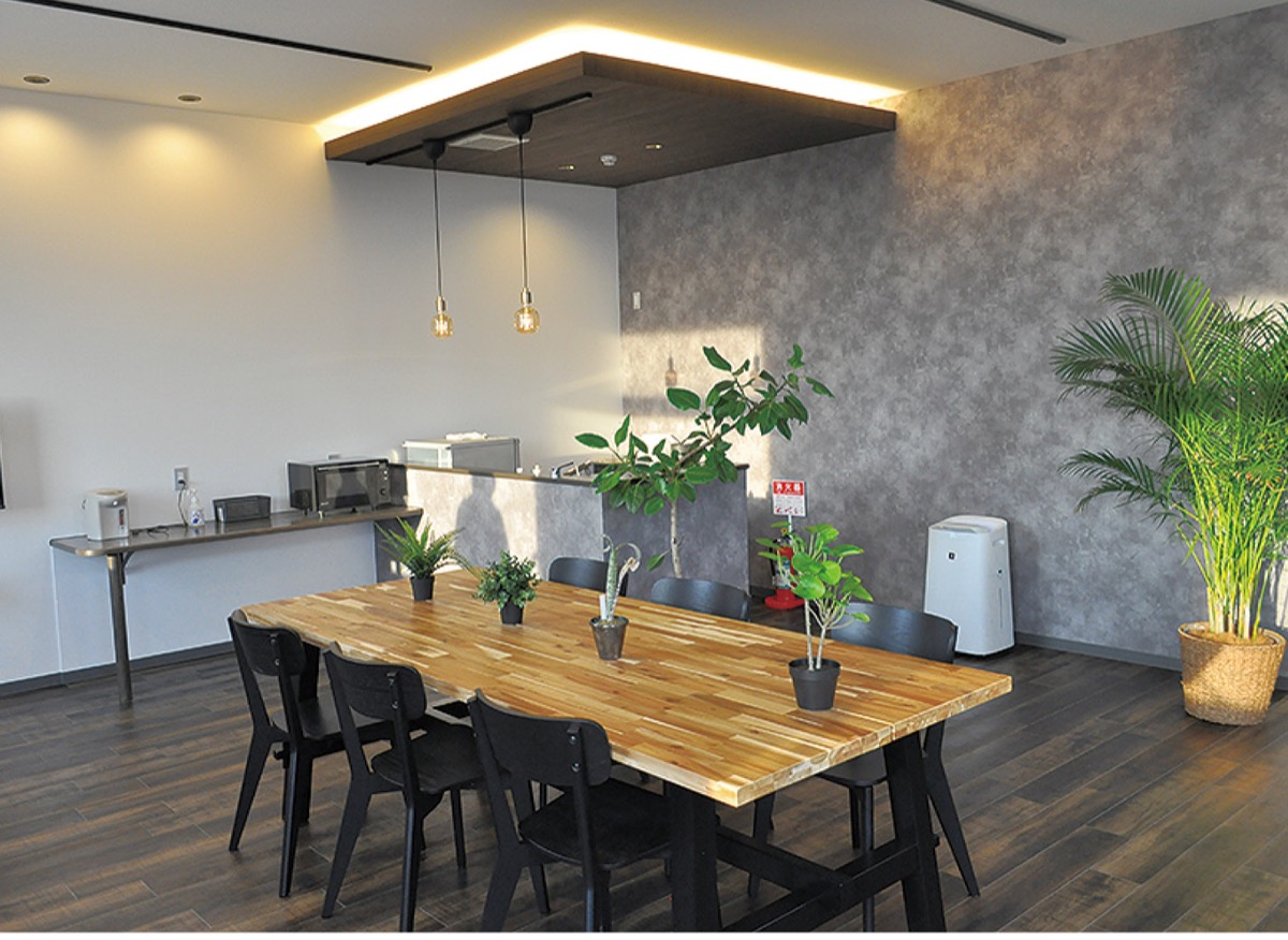 社内にはお洒落なカフェのような食堂や、洗面台を備えた女性更衣室等設置。付加価値の低いものを自動化し残業を削減するだけでなく、人員を付加価値の高い作業に回せるようになるなど作業効率も向上した。また、作業場の高さを確保することによる圧迫感軽減や、更なる事業拡大時に工場拡充ができる工夫なども施している。