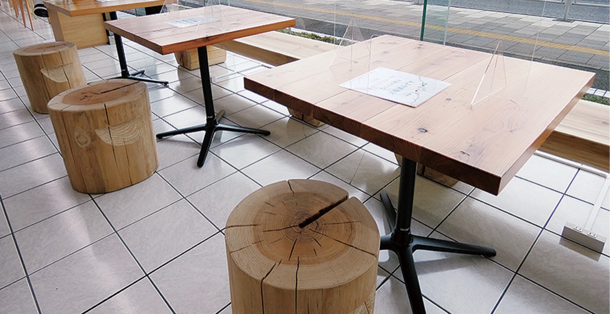 店舗内は秦野市役所にも相談し、市の特徴を取り入れた内装に。秦野市森林組合から調達した秦野産材の杉やヒノキを活用した家具や什器を設置した。また、もともと同店のイメージカラーの緑だった待合スペースのイスは、市の花であるナデシコや桜並木のピンク、市の木であるコブシをイメージした黄色などに変更。地元産の素材や雰囲気を取り入れた大幅なリニューアルは県央エリアでは同店が初だという。
