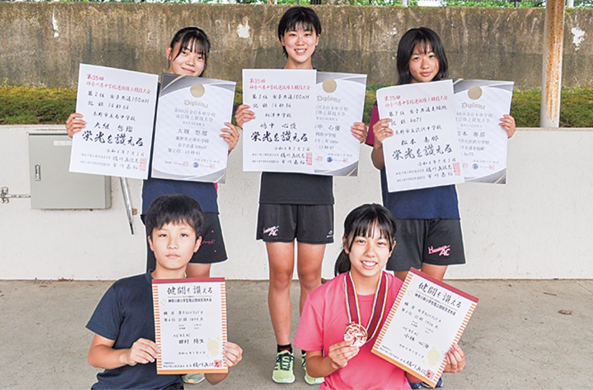今回大継さんが出場した2つの大会では、同クラブに所属する他の選手も入賞。7月9日に開催された「全国小学生陸上競技交流大会神奈川県大会」でも小学生選手が入賞している。入賞者は次の通り(敬称略)。【神奈川県中学校選抜陸上競技大会】▽女子共通100mH3位入賞/嶋中心優(みゆう)(相洋中1年・落合在住)▽女子共通走幅跳7位入賞/松本奏那(そな)(渋沢中3年)【全日本中学校通信陸上競技神奈川県大会】▽女子1年100m4位入賞/嶋中心優▽女子共通走幅跳8位入賞/松本奏那【全国小学生陸上競技交流大会神奈川県大会】▽女子コンバインドA3位入賞/小林心海(ここみ)(西小6年)▽男子コンバインドA4位入賞/田村陽生(はるき)(井ノ口小5年・中井町在住)