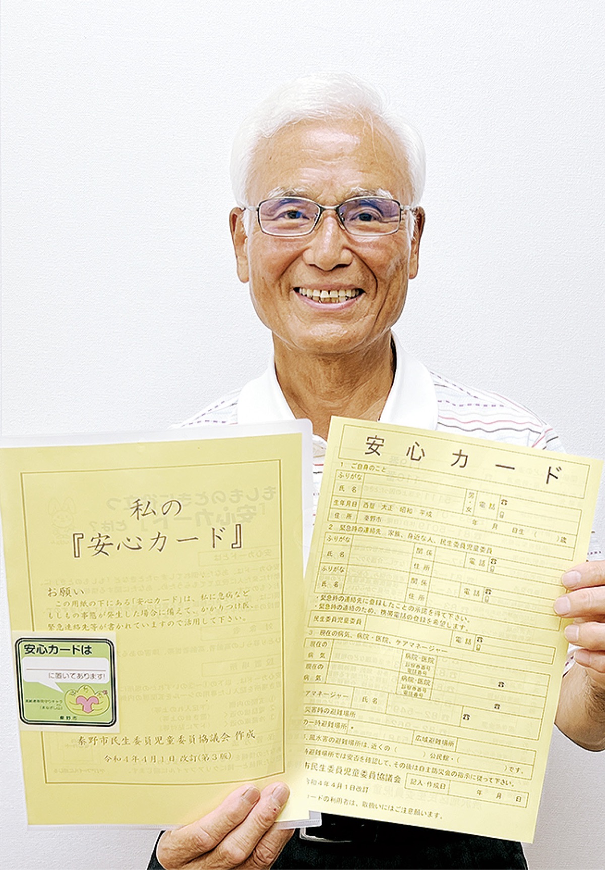 市民の身近な相談者である民生委員が推進する意義は大きく、他のモデルともなっている「安心カード」活動。現在は約1万人に配布し、活用されている。カード運用を中心となって進める市民児協地域援護部会の石川義雄担当会長は「各地区で利用していない方はまだ多い。ひとり暮らしの高齢者や障がい者など、いざという時のためにぜひ積極的に活用してほしい」と話す。