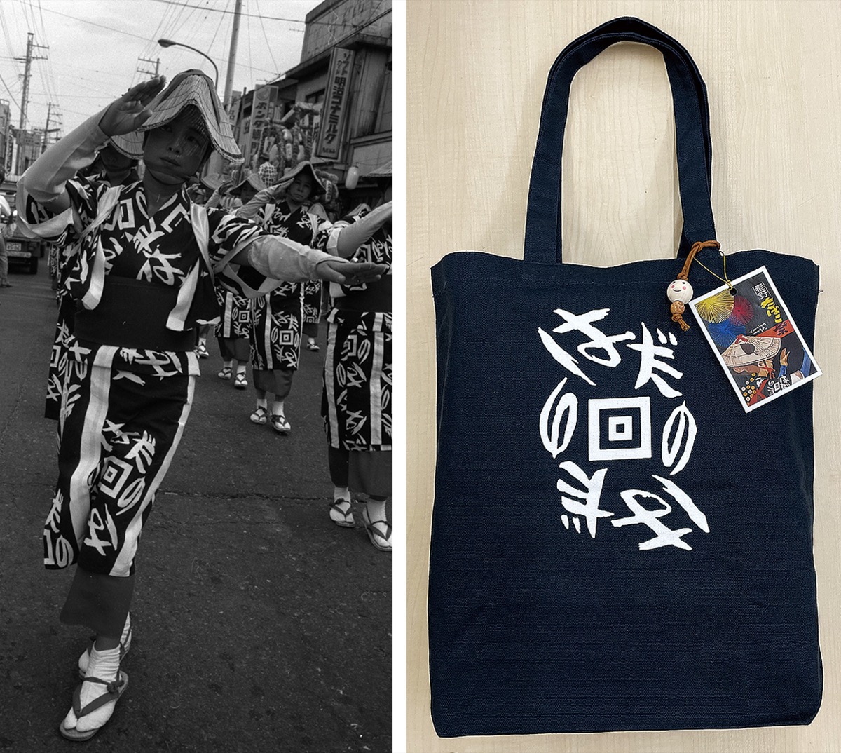 協会として秦野たばこ祭を盛り上げようと作ったバッグ。ここ数年は「煙草音頭千人パレード踊り子ストラップ」を作製・販売していたが、3年ぶりとなる祭りに合わせ、今年は「原点回帰」をテーマに新たなグッズを考案した。
