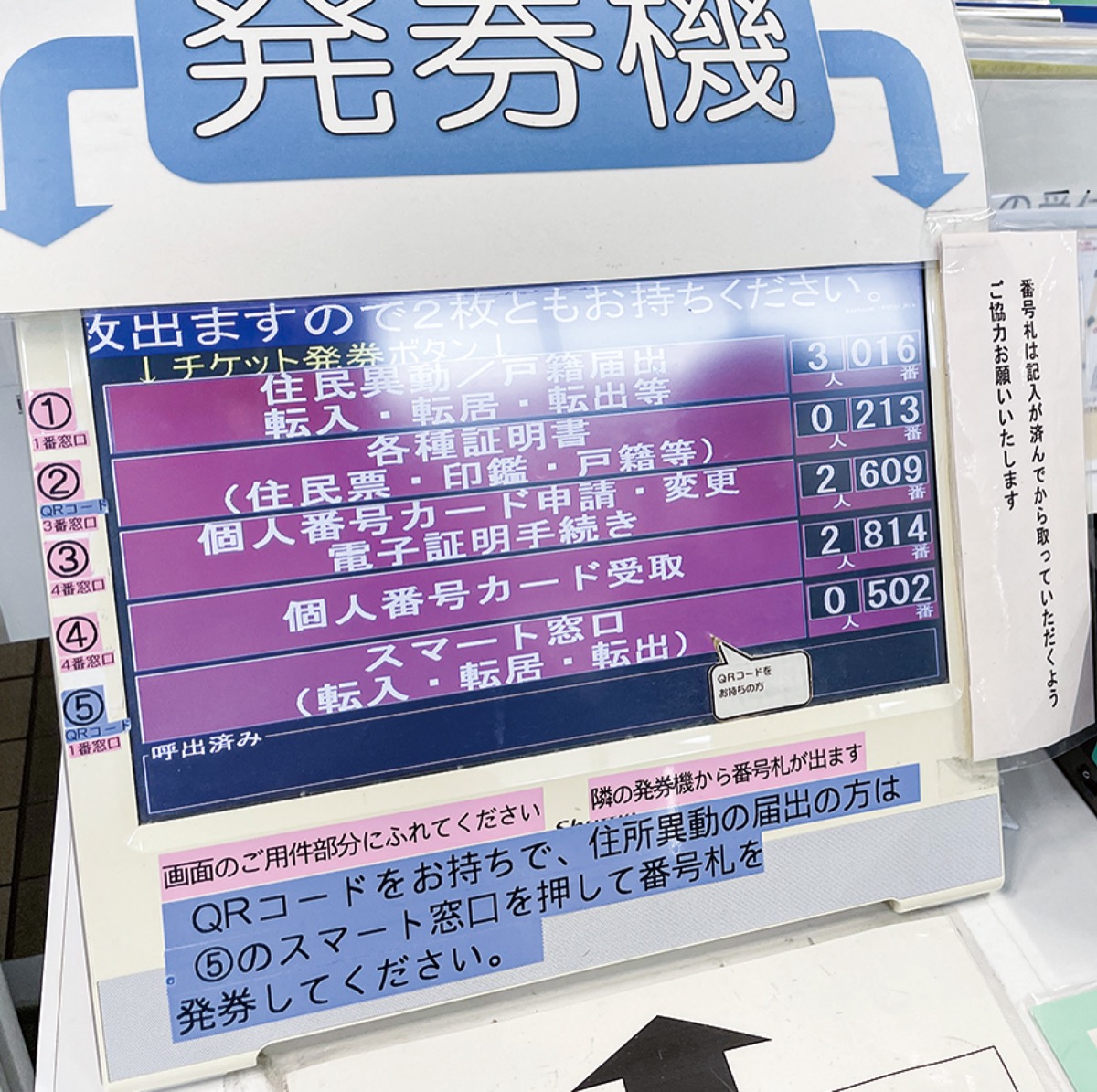 また窓口では、来庁者が番号発券機で手続き内容に応じたボタンを押すと発券される番号札に二次元コードが印字されるようになり、スマートフォンで読み取ると、混雑情報配信ホームページが表示される。さらに案内に従ってメールアドレスを登録すると、取得した番号の順番が近づいた際に呼び出しメールを受け取ることができるようになるという。戸籍住民課によれば、呼び出しの5人前にメールが送信される。
