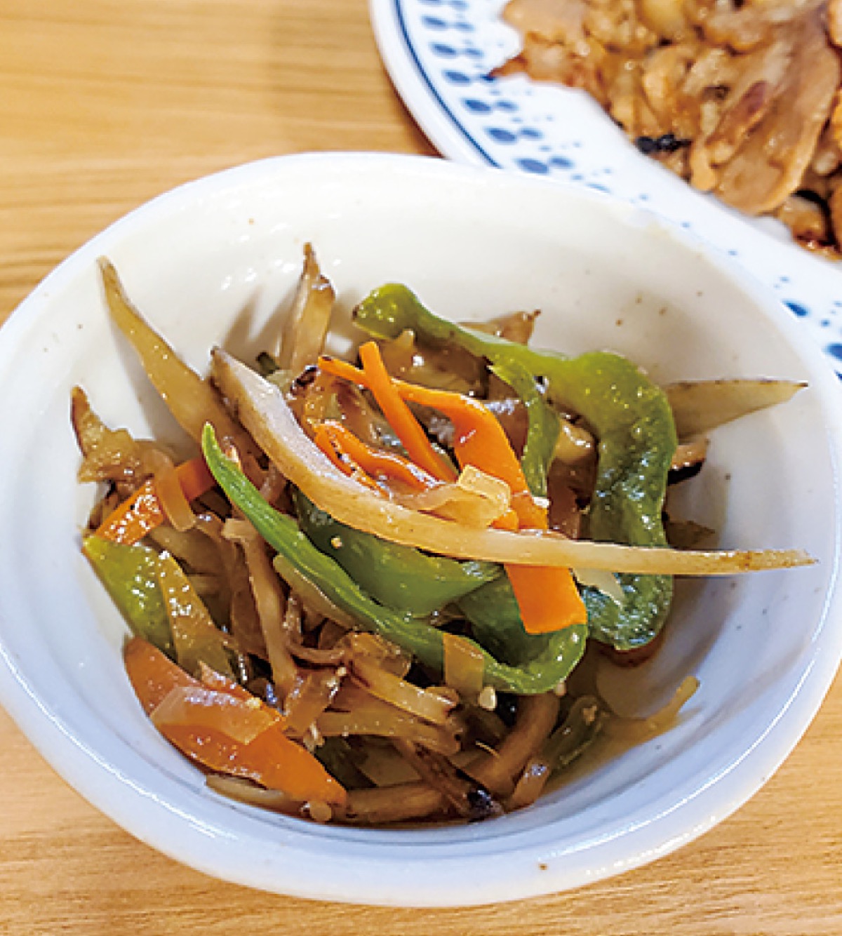 秦野の特産品として注目されている「青パパイヤ」。今がまさに最盛期。クアーズテック秦野カルチャーホール2階のレストランふらっとのメニューは地元の食材を積極的に取り入れている。この秋、スタッフが新たに食材として取り入れたのがこの青パパイヤ。薄く切って醤油に付け込んだり、細切りにしてきんぴらにしたり=写真下=と、試行錯誤を続け、現在は定食の付け合わせとして登場中。「え、これが青パパイヤなの? 触感がいい、どうやって下ごしらえしたの?」など来店者の間でも話題になっている。