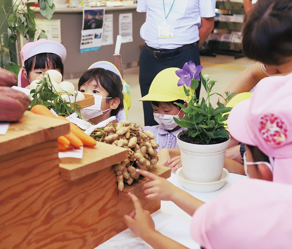 園児らは「飾りがきれい」「お団子たべてみたい」「わたしサツマイモ大好き」などと元気よく感想を話した。