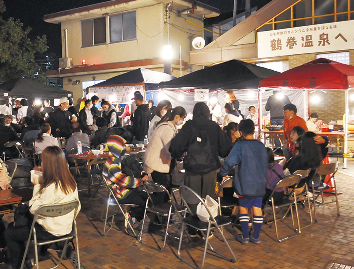 会場では参加した12の飲食店や物販の店が、飲食物や土産物、ジビエの焼きそば・串焼き・つみれ煮込み等を販売。中には自ら仮装し、ハロウィンムードを盛り上げる出店者の姿も見られた。来場者らは鶴巻グルメを味わいながら思い思いの時間を過ごしていた。