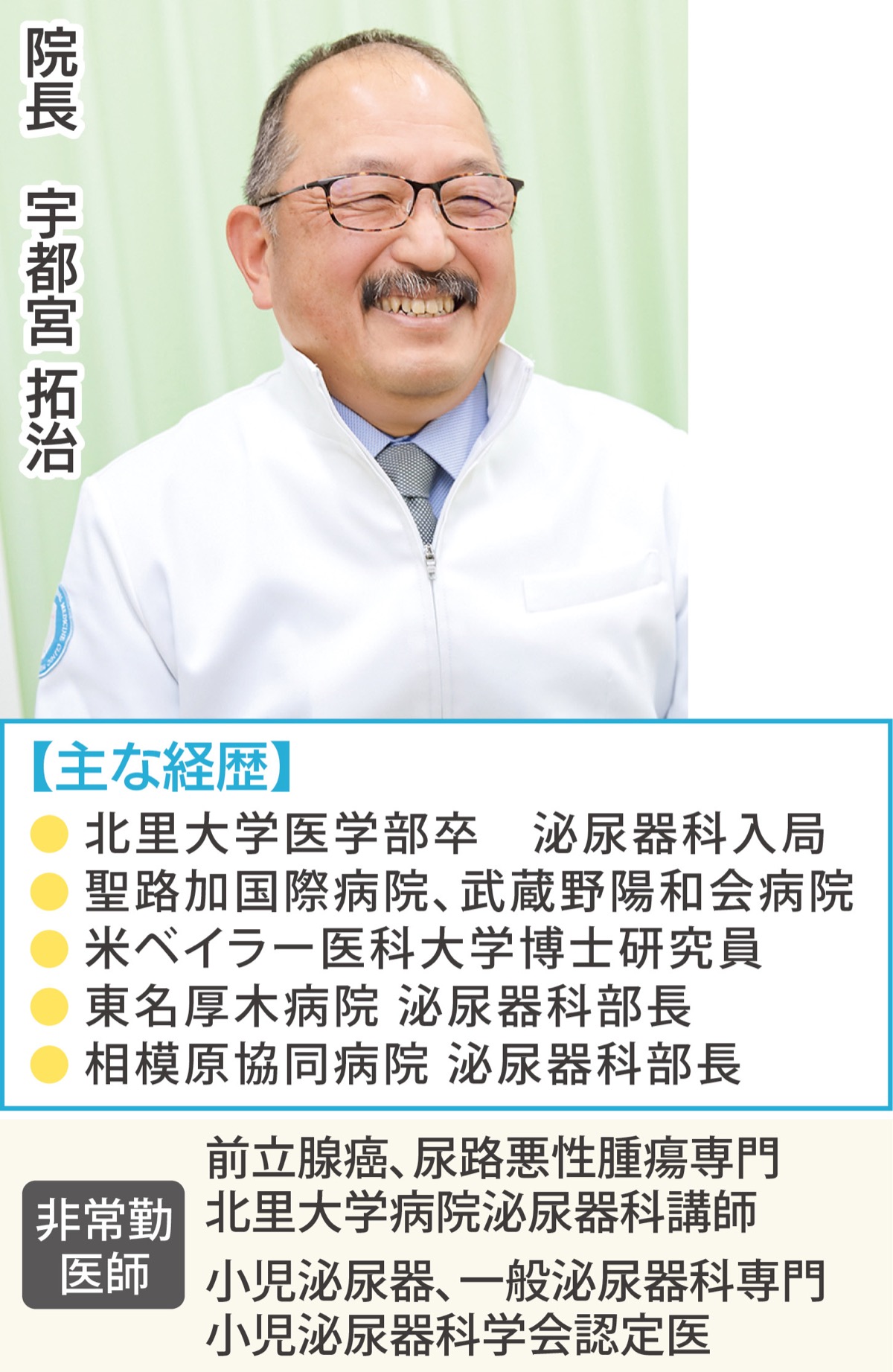「尿漏れや頻尿、血尿、健診での異常、基幹病院への通院負担を軽減することなど、困ったことを相談できる身近な存在でありたい」と同院。